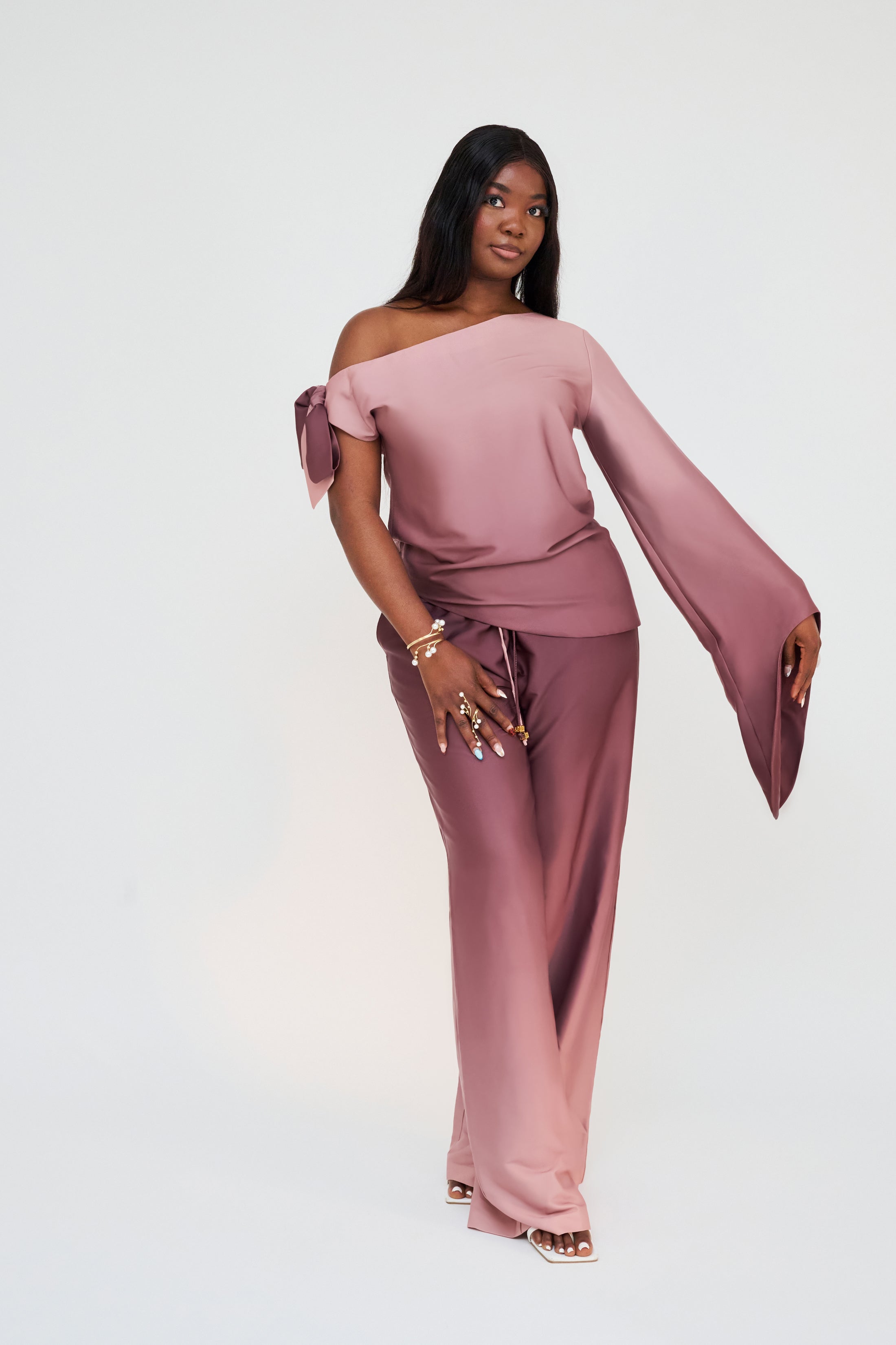 Asymmetric Bow-Tie Sleeve Top – Rosewood Ombré